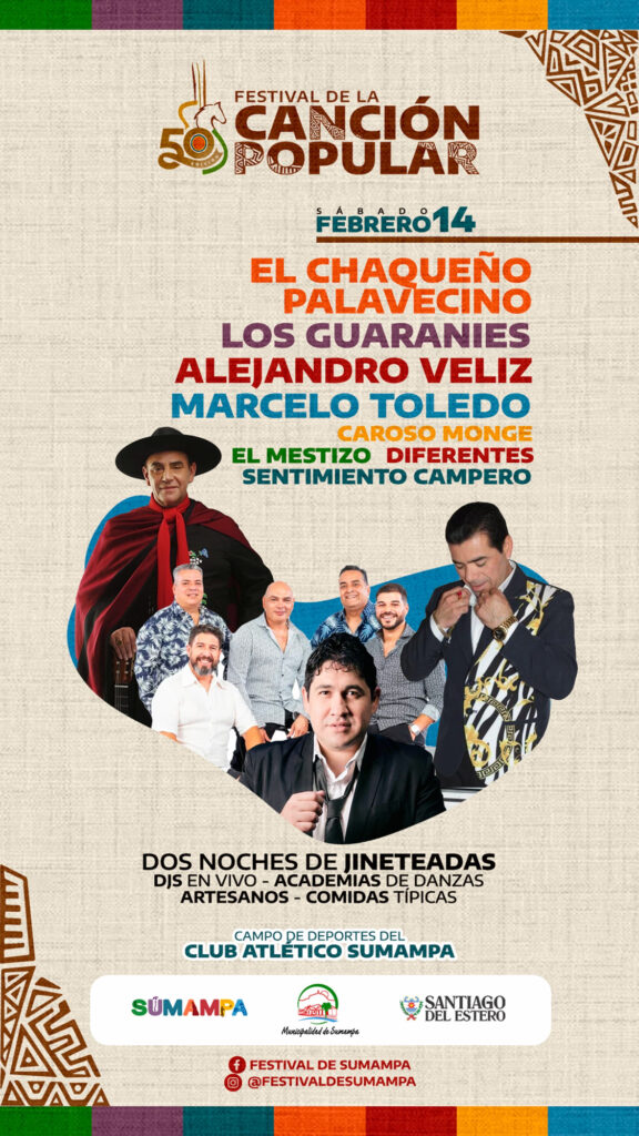 Con una grilla imperdible con artistas de mucha trayectoria entre ellos el Chaqueño Palavecino, Karina la Princesita, Dale q’ va, Los Guaraníes Marcelo Toledo entre otros artistas que dirán presente en la ciudad de la Sumampa.