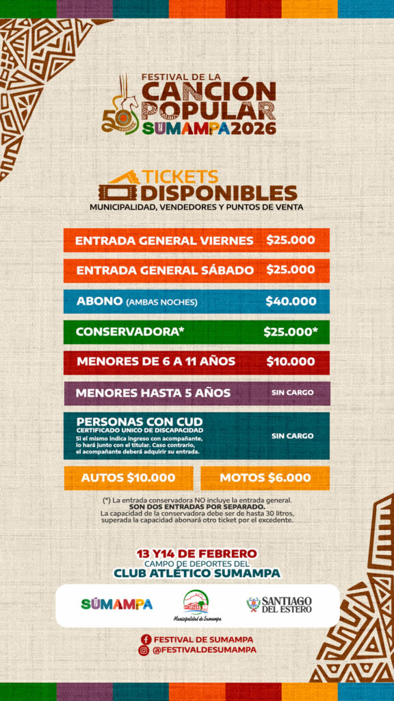 Como cada año el evento popular se realiza en la ciudad de Sumampa este 2026 tiene fecha para el viernes 13 de febrero y el sábado 14 de febrero a realizarse en el Campo de Deportes del Club Atlético Sumampa.